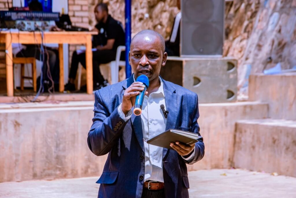 Umuyobozi Mukuru w’Umuryango ADPE, NIYIBIZI Emmanuel ageza ijambo kubitabiriye anahamagarira abashaka gukora ibikorwa byo gusura abarwayi kwa muganga ko babagana binyuze mu mushinga wabo wita ku buzima witwa HAPS (Community Health assistance and Patient support)